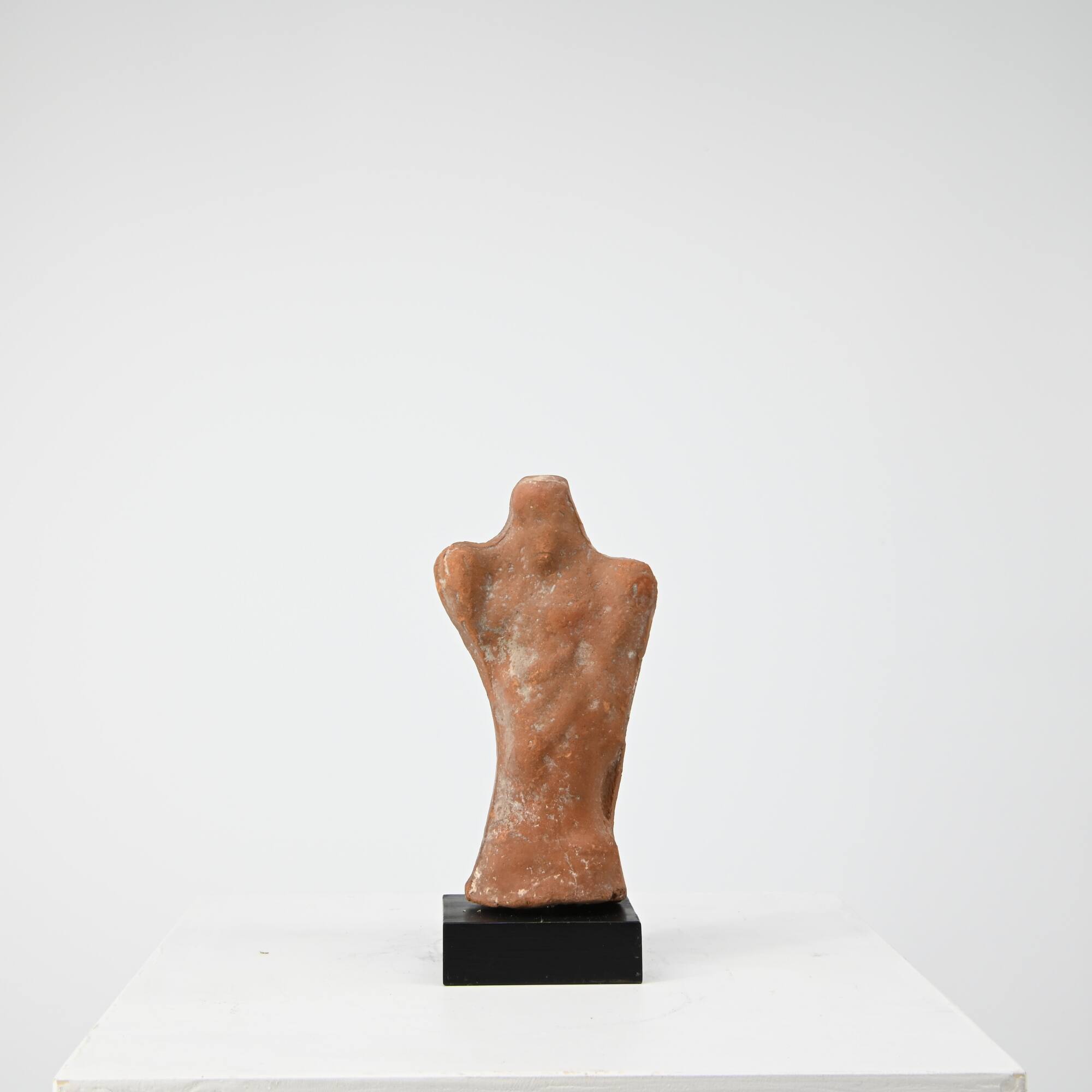 DescriptionAuf hohem ovalem Sockel steht Isis im Hüftmantel mit erhobenem Sistrum und rundem Topf.DimensionsH 11,3 cm, B 5,1 cm, T 3,4 cm