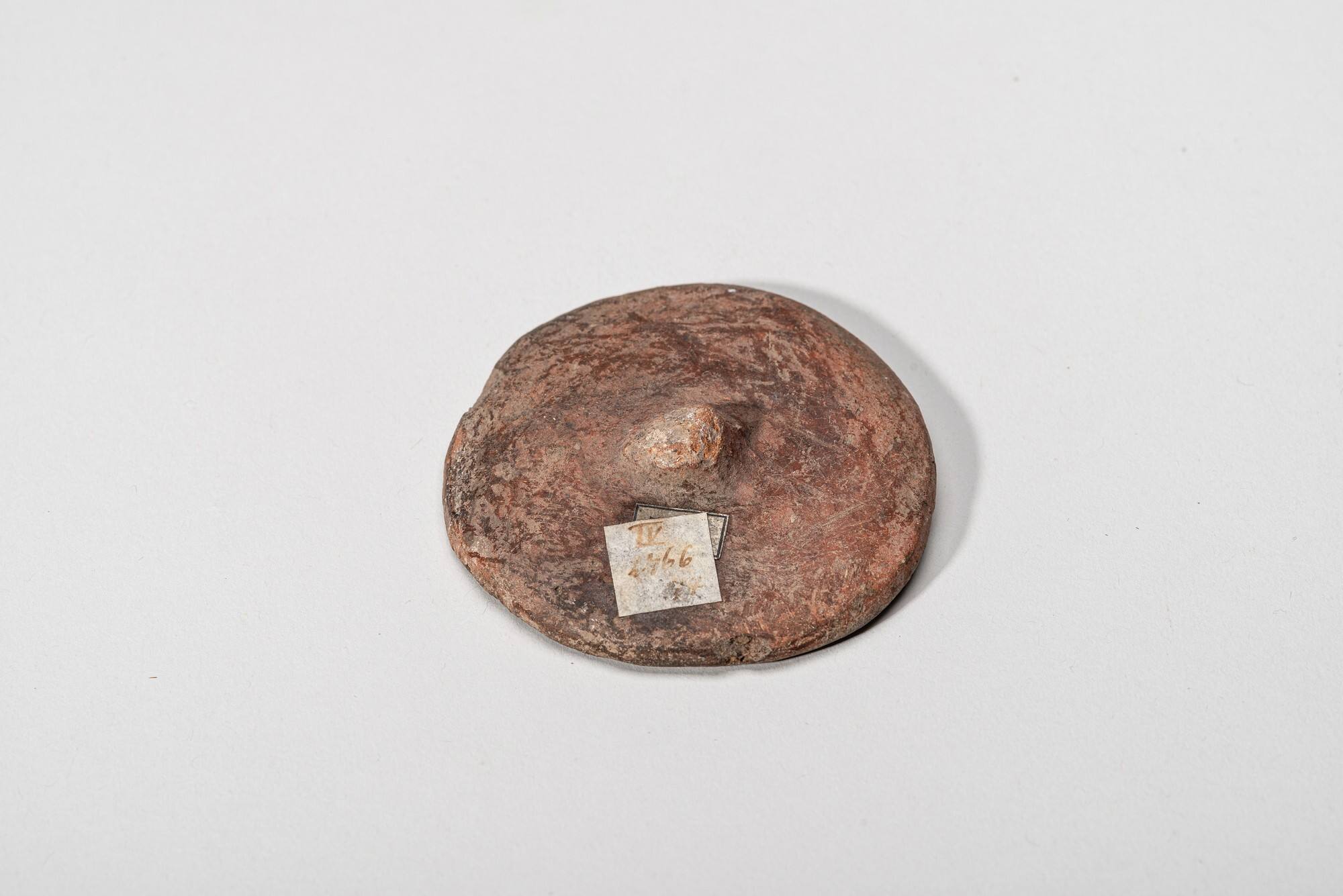 DescriptionEin flacher, leicht gewölbter Gefäßdeckel mit mittig platziertem Griffzapfen.Object numberKLA-Or-729