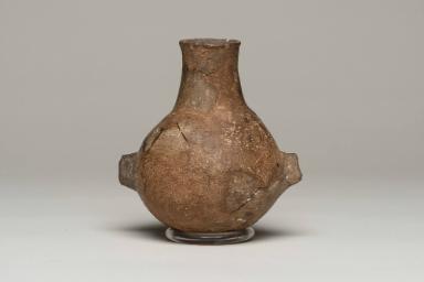 DescriptionDer zylinderförmige Stülpdeckel aus der Zeit von Troia II/III mit leicht konvexer Wandung und Gesichtsdarstellung zeigt im oberen Viertel Applikationen in Form von Ohren, Augenbrauen und Nase. Charakteristisch für die frühen Exemplare dieses Typs ist die geschwungene Linienführung der Augenbrauen; bei jüngeren Stücken ist diese in der Regel geradlinig. Auf der Oberseite befindet sich ein kurzer, leicht gebogener Griffzapfen, mit dem der Deckel vom sich darunter befindlichen Gefäß – zumeist handelt es sich hierbei um Urnen für Brandbestattungen – abgenommen werden konnte.