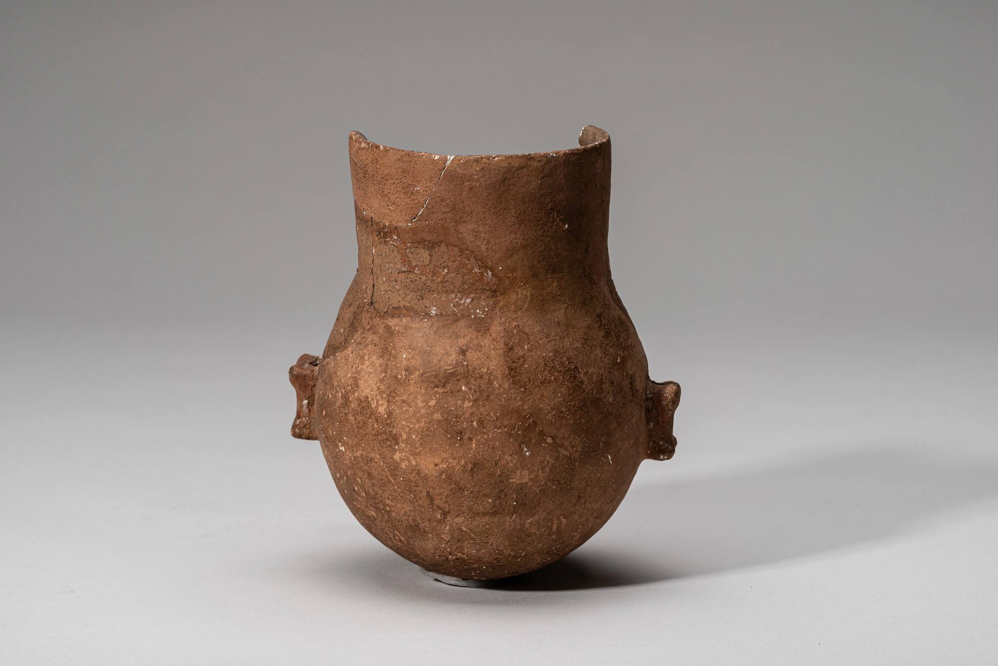 DescriptionKrugartiges Gefäß mit kugeligem Unterteil und leicht trichterförmiger Halspartie. In Höhe des größten Durchmesser befinden sich zwei gegenständige, senkrecht angebrachte Tunnelösen.Object numberKLA-Or-765