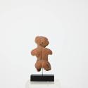 DescriptionVollplastische Figur eines nackten Pygmäen mit kurzen Stummelbeinen, die er zum Gehen weit gespreizt hat. Der Oberkörper ist leicht nach links gedreht, die Schulter zurückgenommen. Beide Arme waren, leicht erhoben, vom Körper weggestreckt. Der feste und kugelige Bauch wölbt sich stark vor, das dralle Gesäß ist durch den knieweichen Stand nach hinten hinausgeschoben. Entlang der Wirbelsäule sind mehrere Muskelpakete angegeben. Der große Schädel hat einen auffallend breiten und hohen Hinterkopf, sowie eine hohe, beinahe rechteckige Stirn. Die Haut liegt dünn und zerfurcht über dem knochigen Gesicht. Die hohe höckrige Stirn, die wulstigen Augenbrauen, die kurze und eingedellte Nase, über der sich steile Falten eingegraben haben, sowie die eingefallenen faltigen Wangen zeigen deutlich, daß es sich bei dieser Figur um einen Pygmäen handelt.DimensionsH 9,3 cm; B 5,5 cm; T 3,8 cm