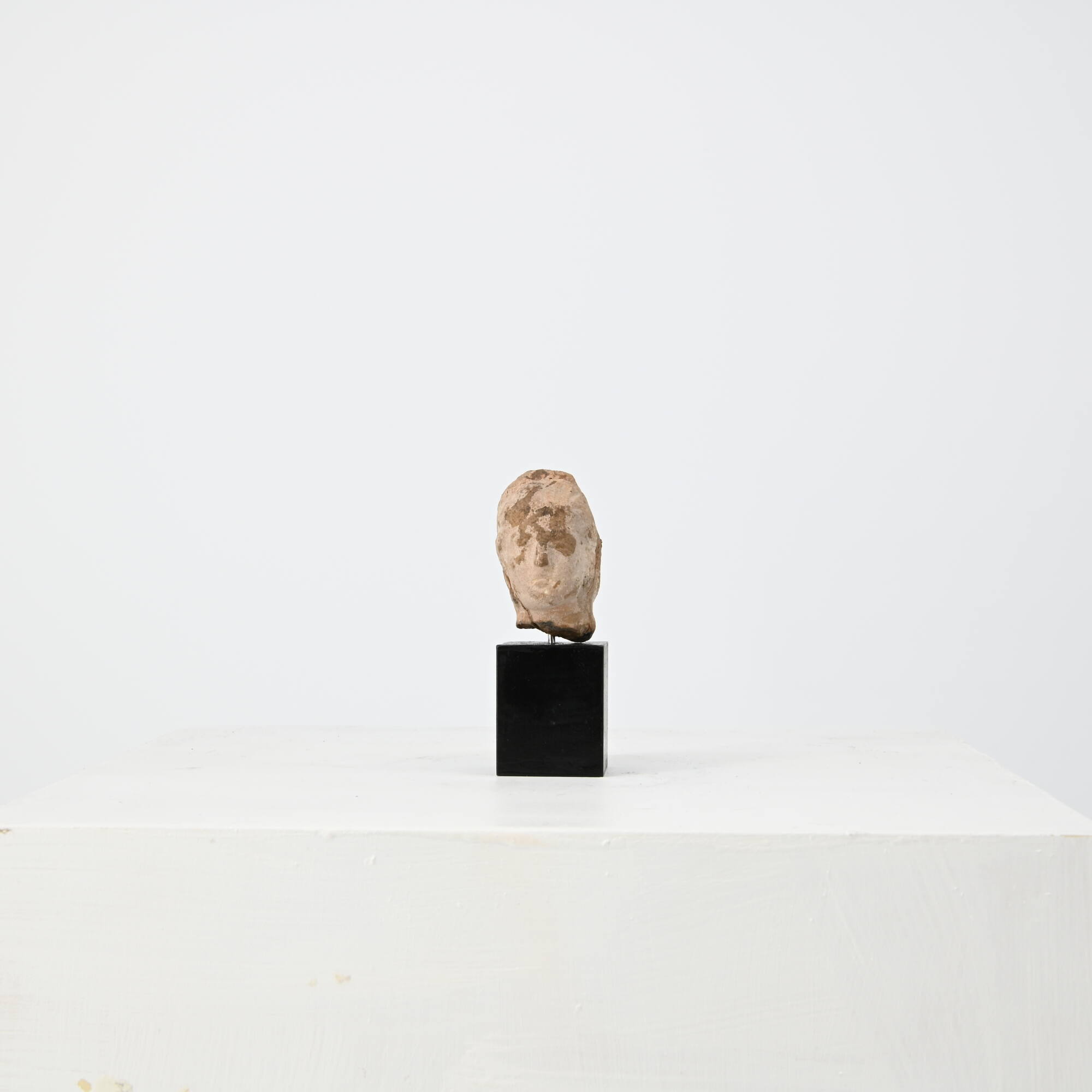 DescriptionLänglich-ovales ausdrucksloses Gesicht mit kleinem Mund und relativ hoher Stirnpartie. Melonenfrisur in regelmäßig eingeschnittenen Bahnen und geflochtener Kranz, der diademartig um den Kopf führt.