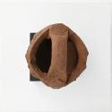 DescriptionWaagrecht abschneidender Henkelkorb in Form von zwei Masken mit rundstabigem Henkel von Seite zu Seite. Auf der einen Seite ist eine Dionysosmaske dargestellt, in die sehr große Augen flach eingeritzt sind. Die feisten und großflächigen Wangen sind von langen Korkenzieherlocken gerahmt. Um die Stirn ist ein Band gewunden, von dem Efeublätter herabhängen, darüber sind weitere Blätter und Korymben angebracht. Eine wie ein Kranz gepunktete Leiste schließt die Maske nach oben hin ab. Die Maske der anderen Seite gibt einen Silen mit gefurchter Stirn, zusammengezogenen Brauen und Nasolabilafalten in Form eines geschwungenen Schnauzbartes wieder. Unter den herzförmigen, wenig organisch eingebetteten Lippen teilt eine breite Linie das Kinn. Ein üppiger Kranz aus Blättern und Korymben ziert den Kopf; hinter spitzen Ohren hängen Korkenzieherlocken herab. Häufig ausgeformter Typus, auf eine Patrize zurückgehend.